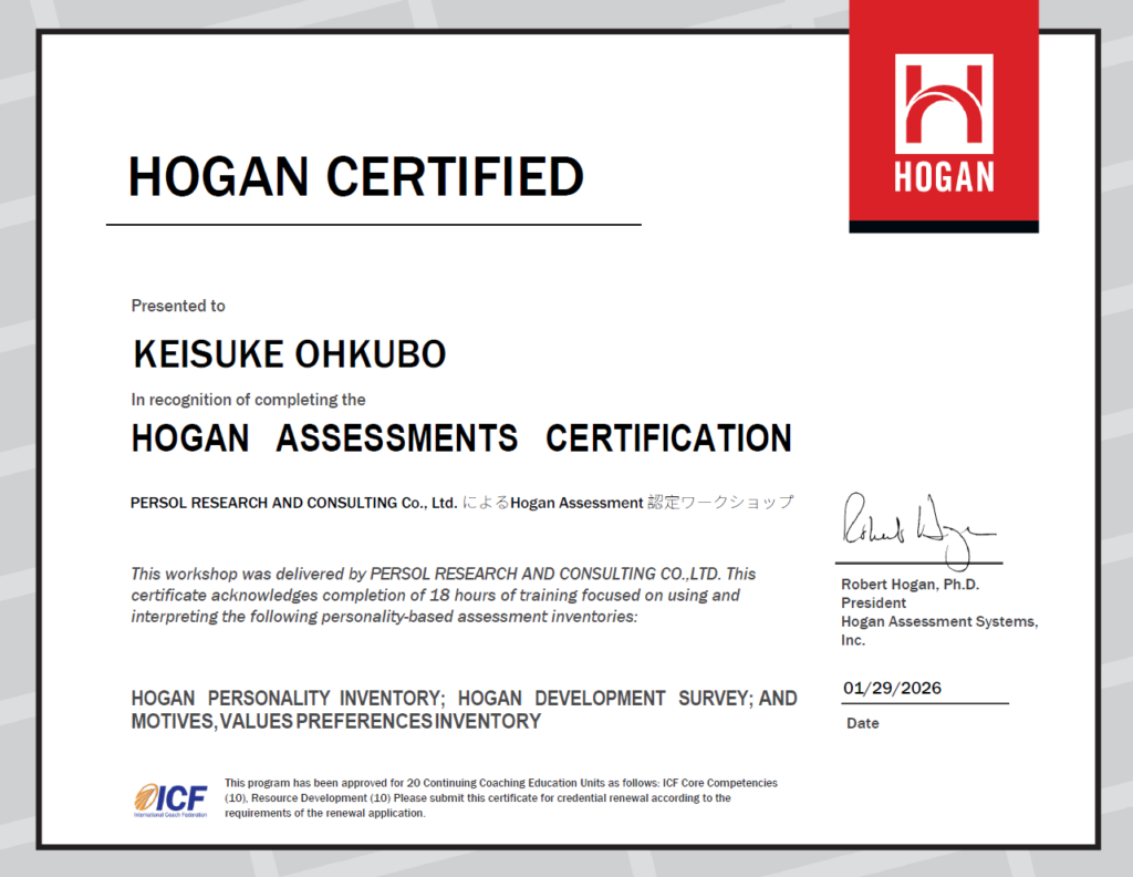 世界的アセスメント「Hogan Assessments」認定コーチ資格を取得:データに基づくリーダー開発支援を強化
